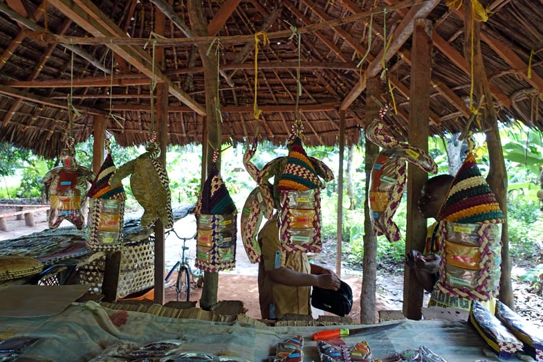 Diejenigen, die im Touristikgeschäft sind, nehmen die Touristen aus. Der Junge, der uns durch die Farm geführt hat und eigentlich in die Schule hätte gehen müssen, war z.B. sichtlich enttäuscht, dass wir ihm nur 3 Dollar Trinkgeld gegeben haben. In seinen Augen ist das sicher verständlich, denn er hat in dieser Zeit aus Palmzweigen ein Handtäschchen, ein Armband, einen Ring, einen Frosch und eine Krawatte geflochten. Andererseits war seine Führung durch die Plantage mangelhaft. Wir können ihm das aber nicht verdeutlichen.