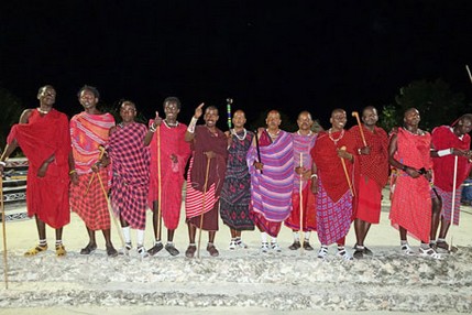 Alles ist mit viel Aufwand schön dekoriert worden und der Service ist ausgezeichnet. Das Speisenangebot ist afrikanisch und nicht so beeindruckend. Lecker sind die Teigtaschen, die an der Backstation hergestellt werden. Leider geht das ziemlich langsam (pole pole), sodass man lange darauf warten muss. Eine Band spielt afrikanische Rhythmen und die Massai führen ihre Tänze auf.