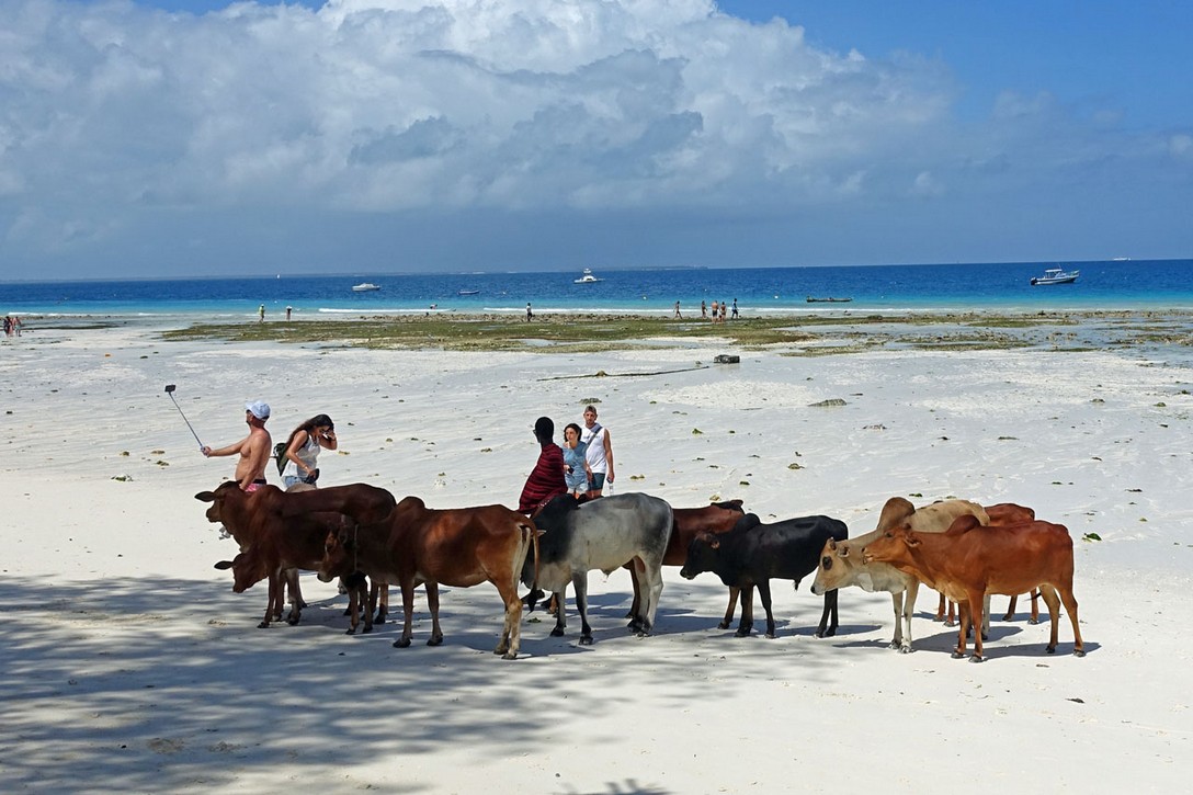 Das gab es vor zwei Jahren noch nicht. Eigentlich schade, aber man kann es den Einheimischen nicht verdenken, dass sie sich auf diese Weise das Geld für ihren Lebensunterhalt verdienen wollen. Ein Stück weiter treibt ein Rinderhirt seine Tiere am Strand entlang, die bei Ebbe das Seegras fressen, das nun frei liegt. Natürlich kommen Strandwanderer vorbei und fragen, ob sie ein Foto machen dürfen. Er nickt und hält stumm die Hand auf... Der Dollar wechselt den Besitzer und der Tourist ist zufrieden mit seinem Foto.