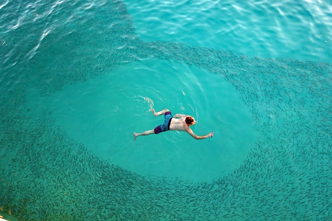 Am späten Nachmittag und am Abend versammeln sich seltsamerweise die Sardinen in großer Zahl immer in der Nähe der Sunsetbar. Wenn ein Schwimmer in ihre Nähe kommt und sie mit seiner Camera fotografieren will, weichen sie in einem Bogen geschickt aus und schwimmen in einem Verband um ihn herum. Viele Gäste beobachten das Schauspiel jeden Abend von der Bar aus. Tausende Fische sammeln sich zu einem großen Pulk und schwimmen völlig geruhsam miteinander umher.