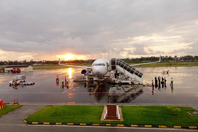 Um 21:00 hebt unsere Boeing 767-300 von Condor in Frankfurt ab und nach total ruhigem Flug landen wir 9 1/2 Stunden später in Sansibar.
